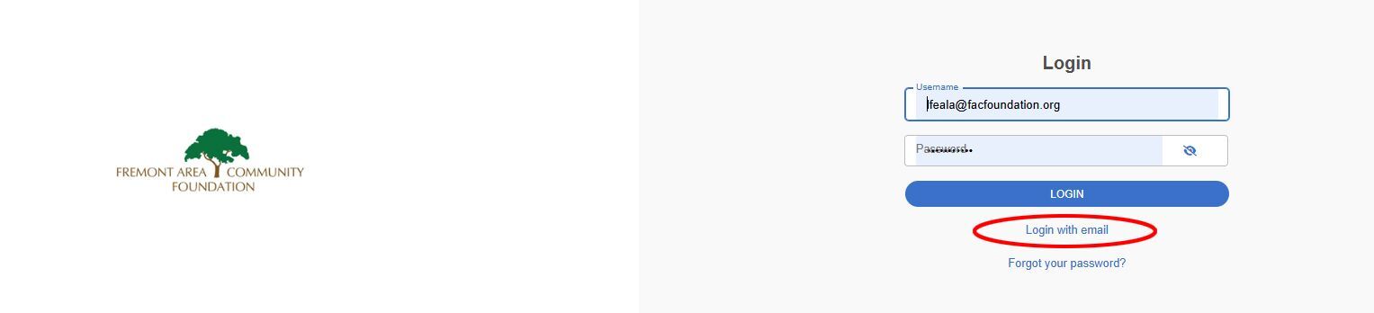 Navigate to our website at facfoundation.org and select Login on the top of the homepage. Be sure to select the Fund Advisor Portal, not the Board or Scholarship Portal. If your screen looks like this, you are in the right place:
